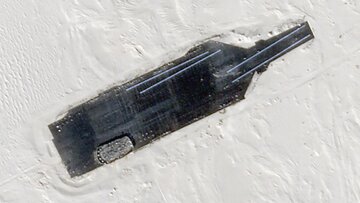 ماکت ۳۰۰ متری ناو هواپیمابر آمریکایی در صحرای تکلهمکان به شکلی دقیق طراحی شده است و حتی مکان منجنیقهای پرتاب هواپیما در آن نیز به دقت تعیین شده است.
