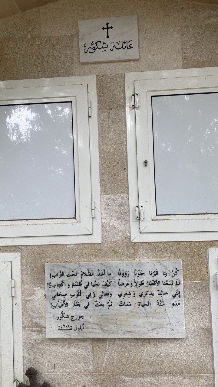 با پایان گفتگوی روایتگری، خواهر زاده اش که یک مقام نظامی است اصرار دارد که من را به «آرامگهِ ابدی» خانوادگی شکور که تنها چند متر با «منزلگهِ دنیوی» ایشان فاصله دارد، ببرد تا سنگنوشته و شاه بیت جورج که زینت بخش اقامتگه آینده اوست را شاهد باشیم و از این گفتار فاخر، پند آموز و پُر مغز همچو او لذت ببرم، دعوتش را با اندوه اجابت می کنم و با زمزمه کردن دلسروده استاد، و ارزوی سلامتی برای ایشان، با میزبانانم خداحافظی می کنم و صحنه های ناباورانه آن روز را در طول مسیر بازگشت، و باز هم با زمزمه دلسروده استاد، مرور می کنم که :